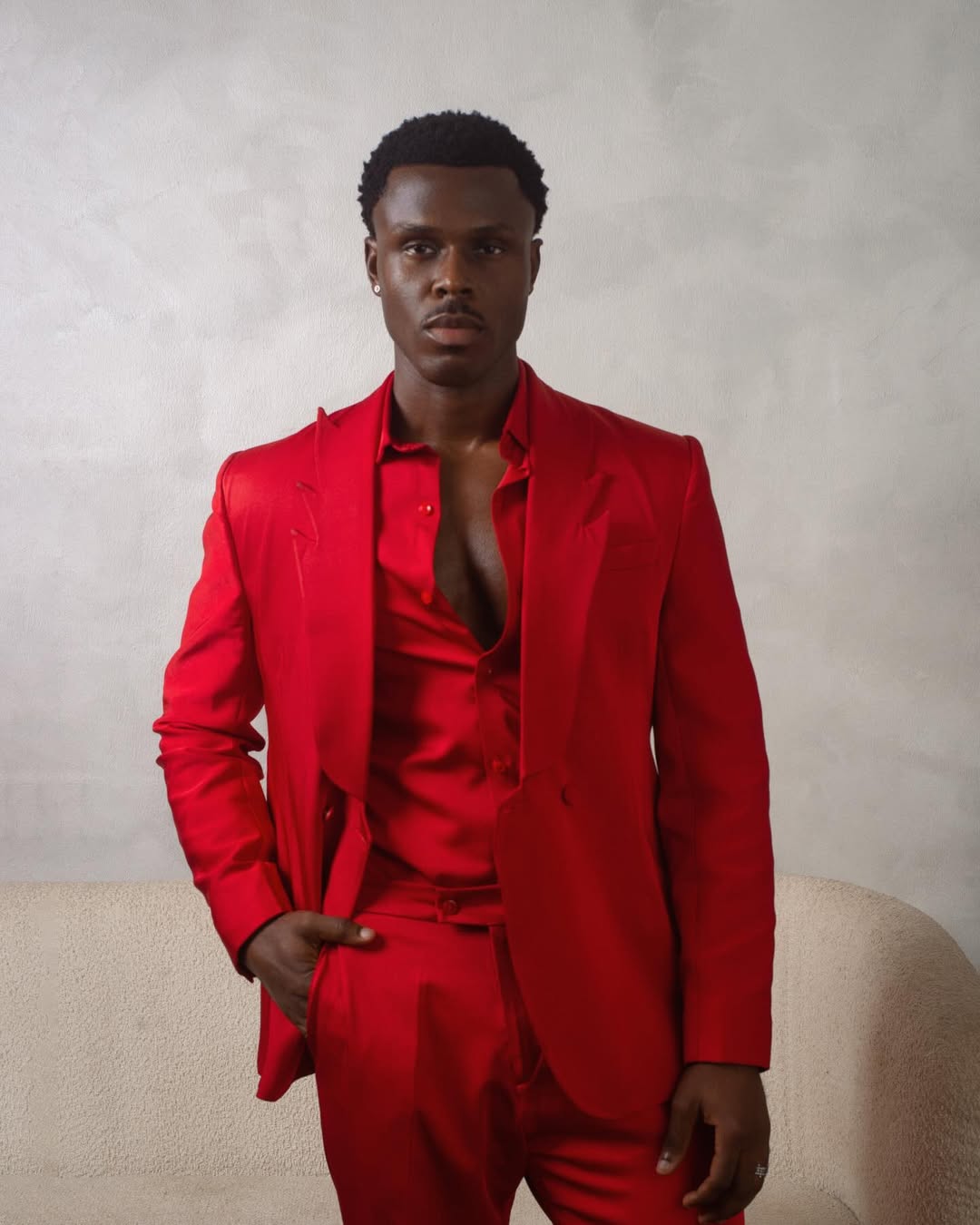 Set is designed for those who lead with confidence. Cut in a rich red tone, the two-piece effortlessly set balance. The structured blazer features clean lines and a refined silhouette, while the matching trousers deliver a sleek, elongated fit.